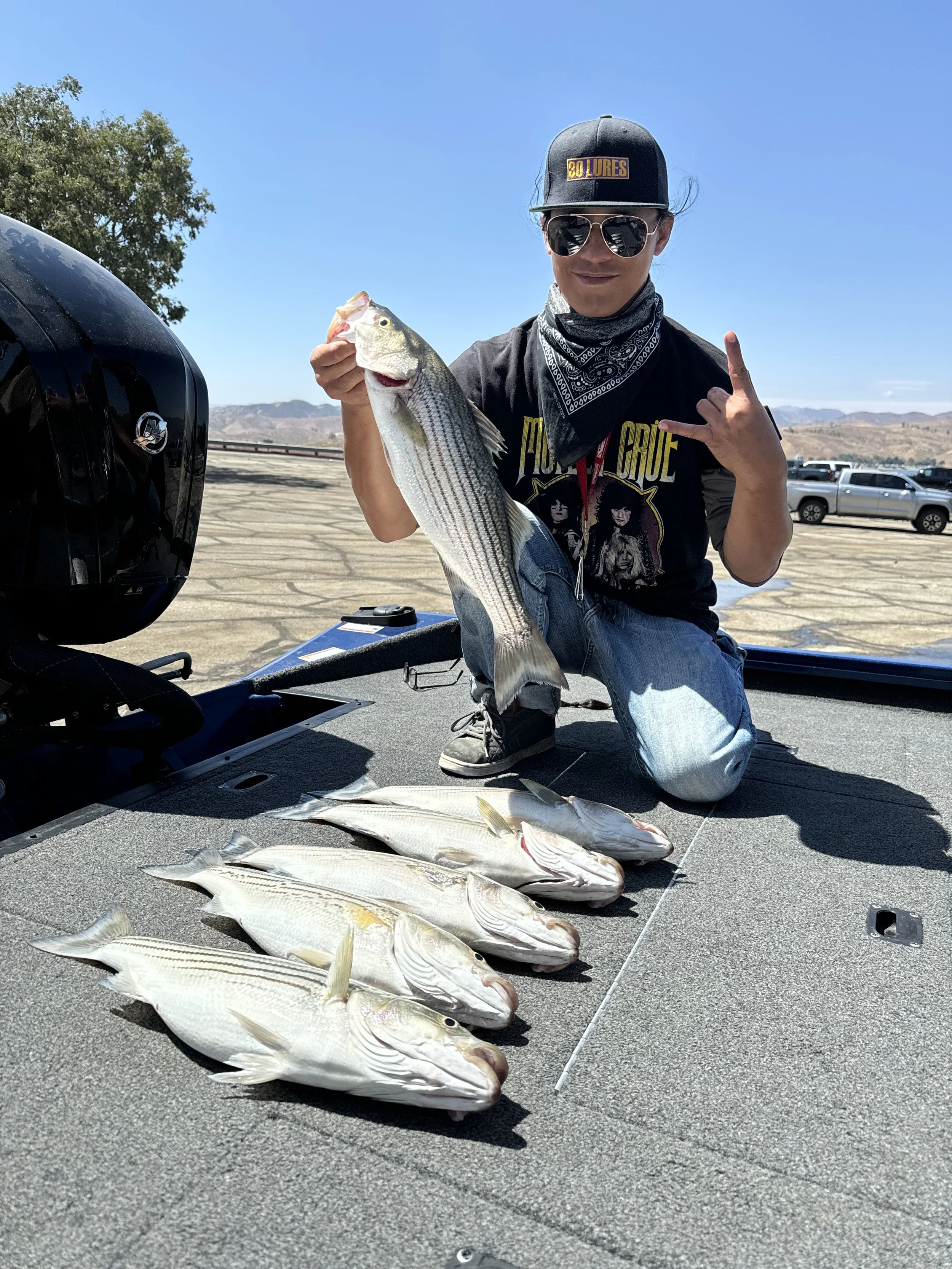 Castaic has 29 miles of shoreline and the Lower Lagoon "After Bay" has roughly 2 Miles. Lots of Rock and cliff walls that Large Mouth love to hangout on, and wide open water where Striper boils take place! Pyramid lake has 21 Miles of shoreline, and the Northern strain of Largemouth Bass. Pryramid Boast's mega Striper in winter!
